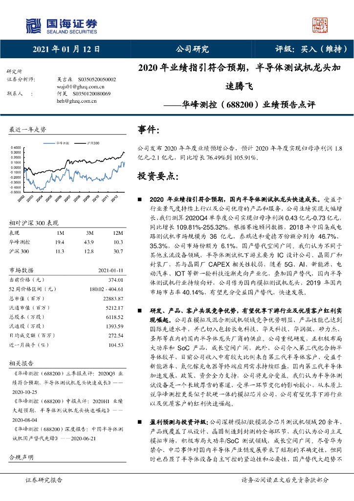 国海证券:华峰测控(688200)-业绩预告点评:2020年业绩指引符合预期,半导体测试机龙头加速腾飞.pdf
