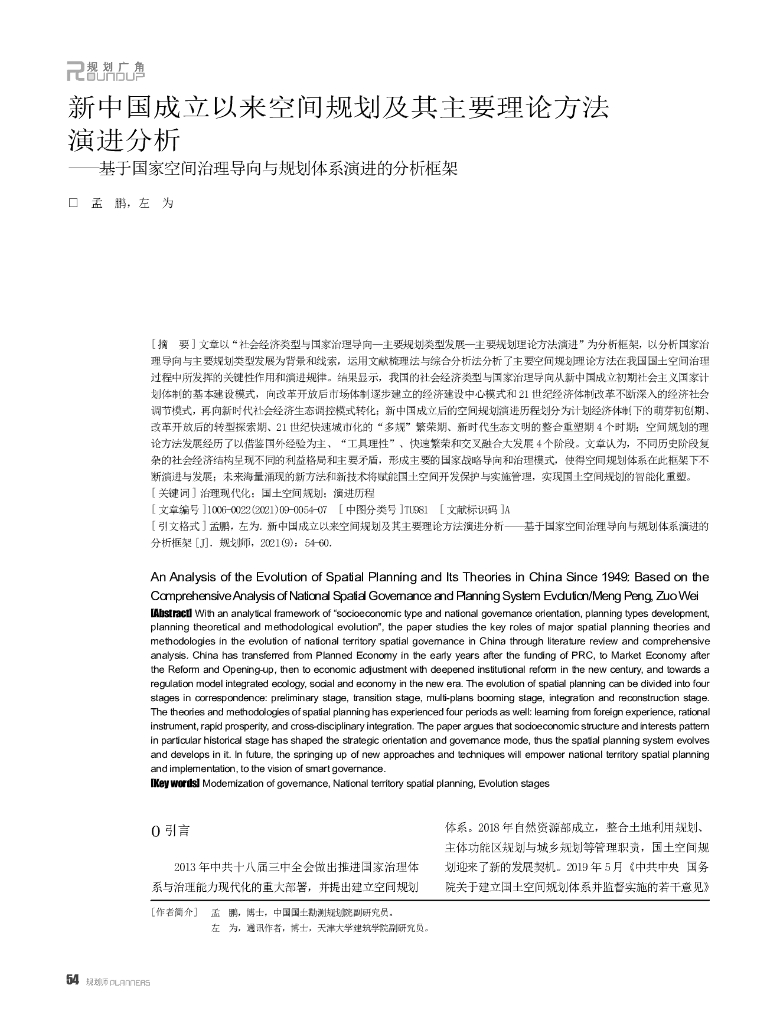 新中国成立以来空间规划及其主要理论方法演进分析——基于国家空间治理导向与规划体系演进的分析框架.pdf