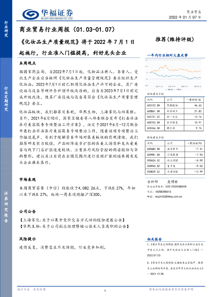 华福证券:商业贸易行业周报:《化妆品生产质量规范》将于2022年7月1日起施行,行业准入门槛提高,利好龙头企业.pdf