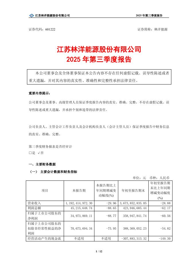 601222-林洋能源:江苏林洋能源股份有限公司2025年第三季度报告.pdf