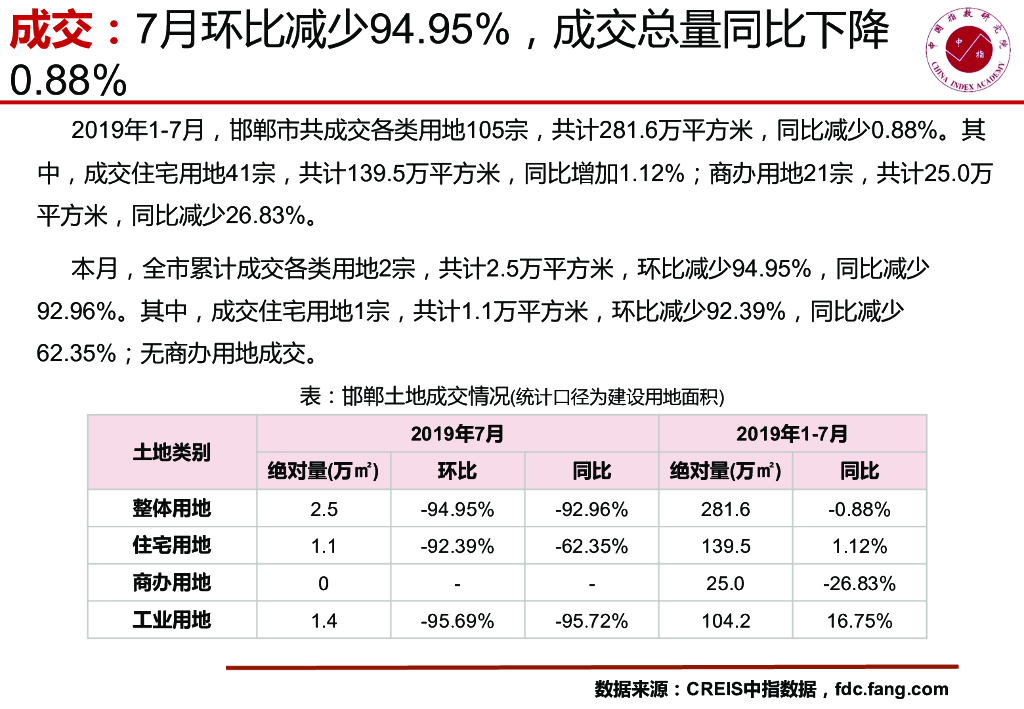 中国指数研究院:邯郸房地产市场快报(2019年7月).pdf