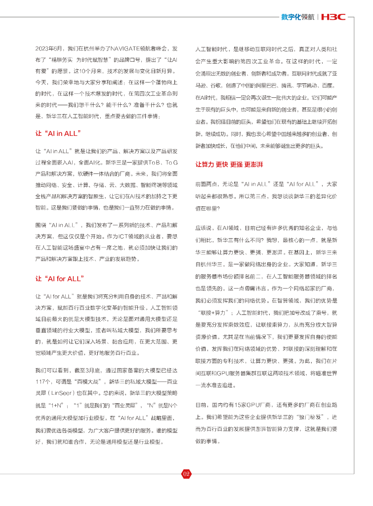 新华三:数字化领航(2024年5月版 总第32期)-X AI为时代赋智慧.pdf
