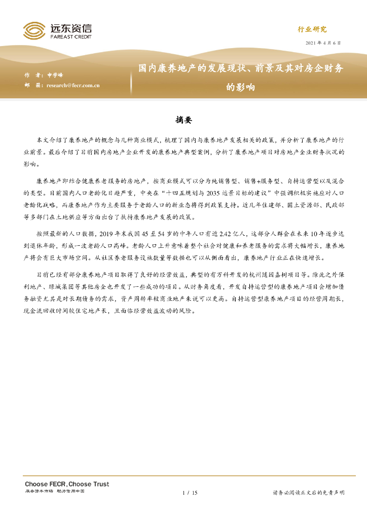 远东资信:国内康养地产的发展现状、前景及其对房企财务的影响.pdf