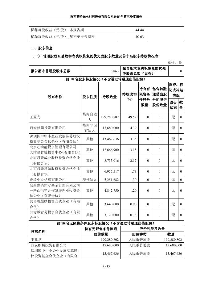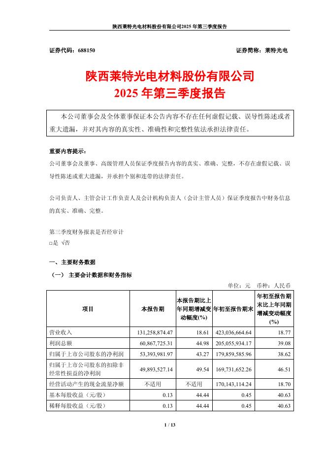 688150-莱特光电:陕西莱特光电材料股份有限公司2025年第三季度报告.pdf