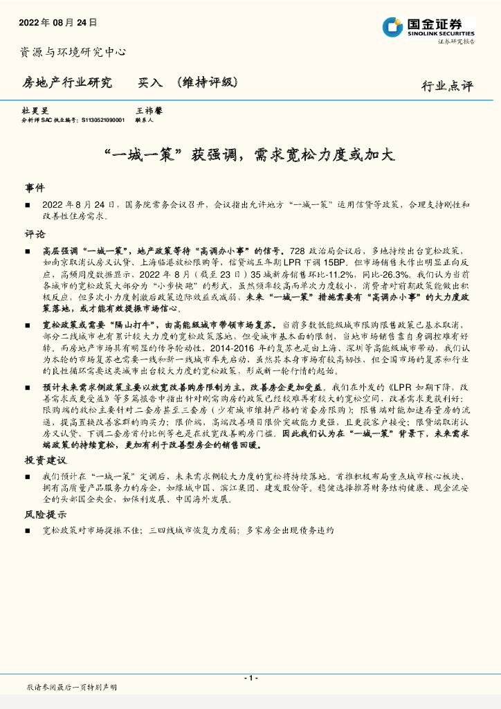 国金证券:房地产行业点评:“一城一策”获强调,需求宽松力度或加大.pdf