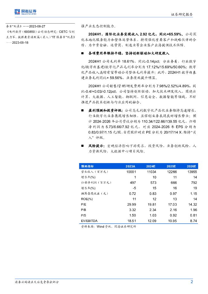 国海证券:电科数字(600850)-2024年半年报点评:2024H1业绩持续稳健,产品和出海增速可观.pdf