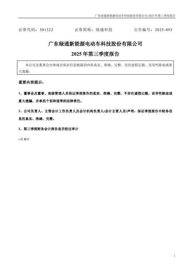 301322-绿通科技:2025年三季度报告.pdf