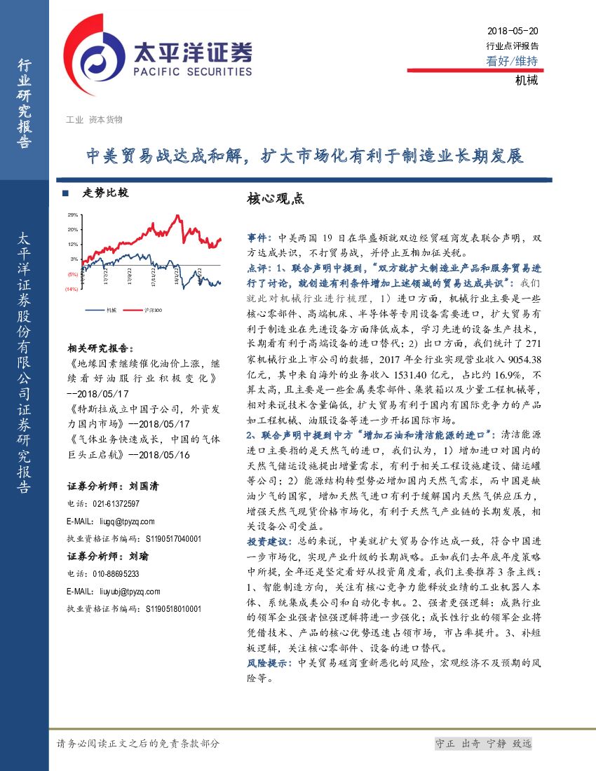 太平洋证券:机械行业点评报告:中美贸易战达成和解,扩大市场化有利于制造业长期发展.pdf