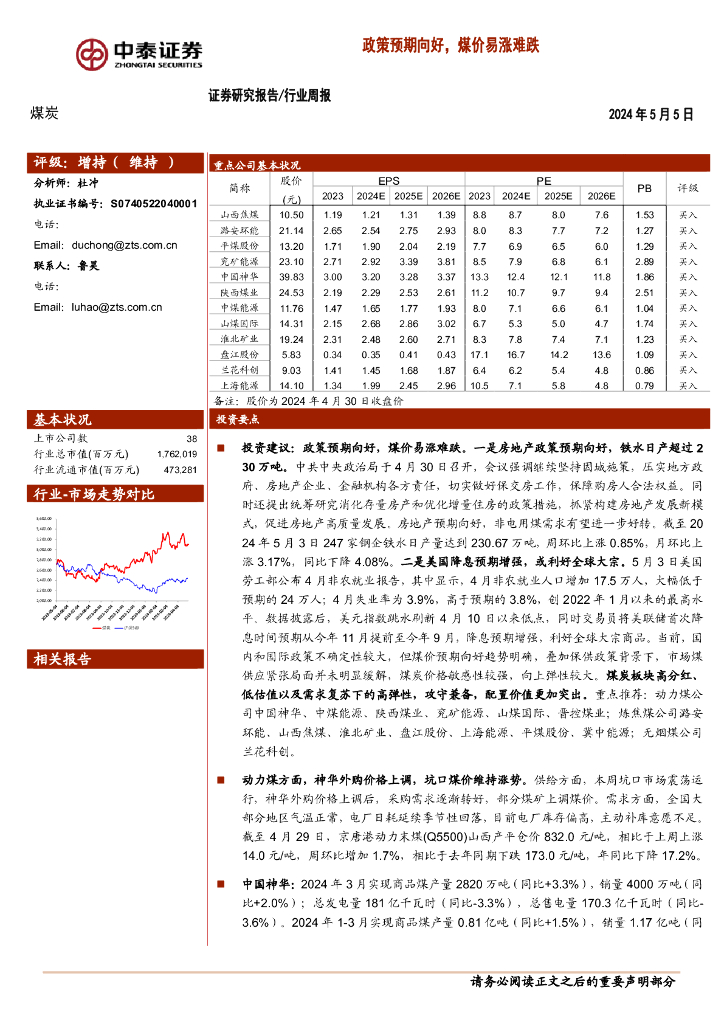 中泰证券:煤炭行业周报:政策预期向好,煤价易涨难跌.pdf