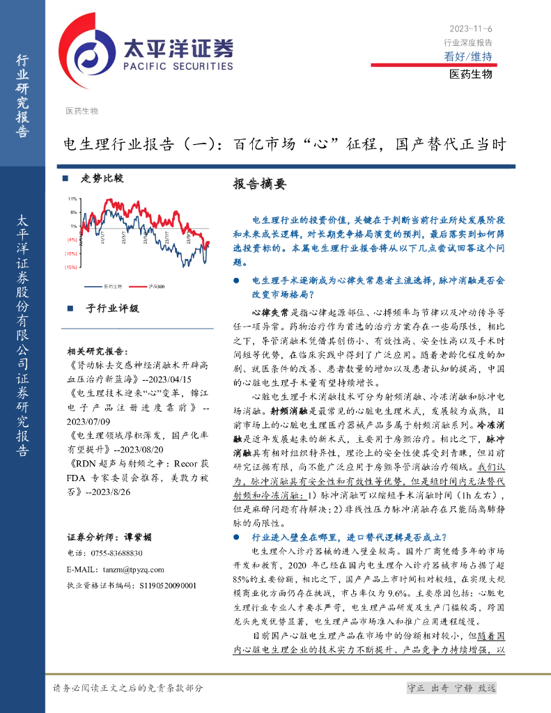 太平洋证券:电生理行业报告(一):百亿市场“心”征程,国产替代正当时.pdf