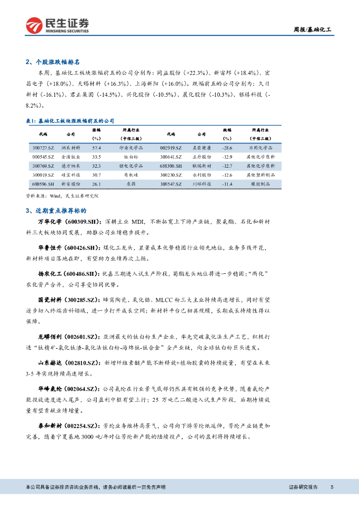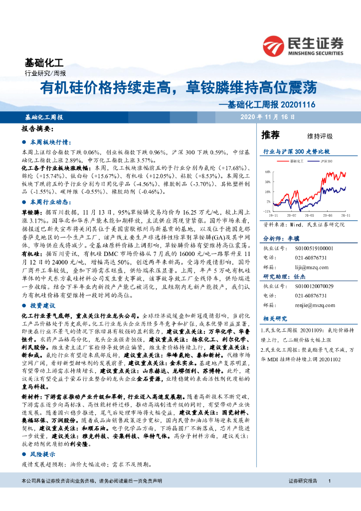 民生证券:基础化工周报:有机硅价格持续走高,草铵膦维持高位震荡.pdf