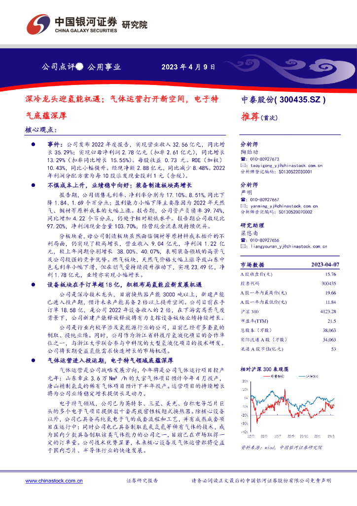 中国银河:中泰股份(300435)-深冷龙头迎氢能机遇;气体运营打开新空间,电子特气底蕴深厚.pdf