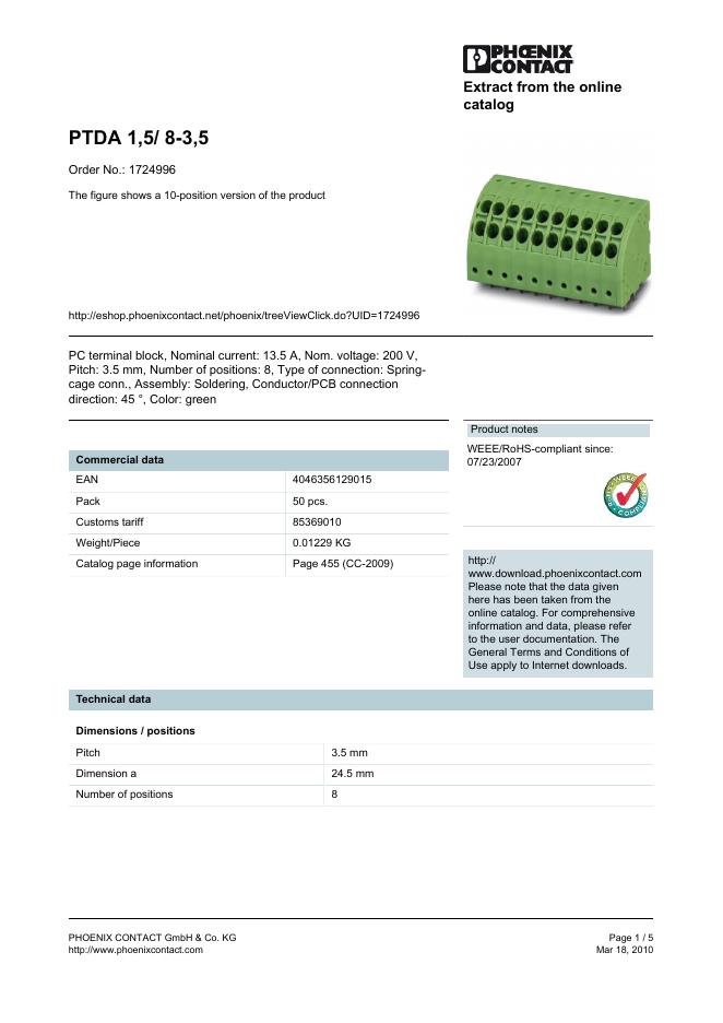 PHOENIX CONTACT PTDA 1,5/ 8-3,5 Order No.: 1724996 数据手册.pdf