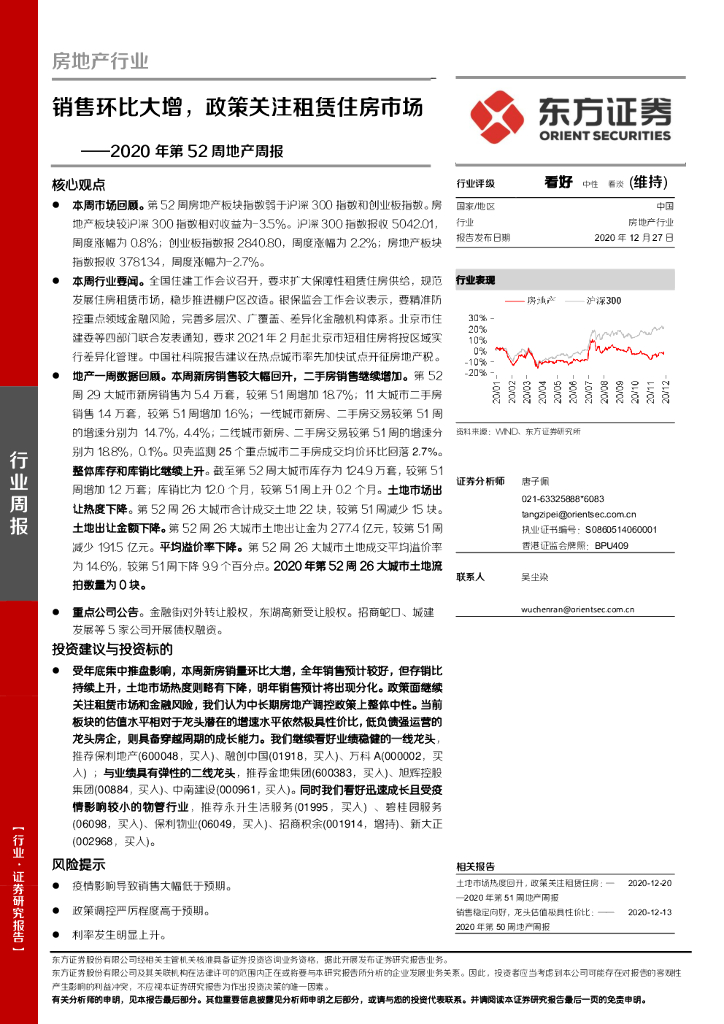 东方证券:房地产行业2020年第52周地产周报:销售环比大增,政策关注租赁住房市场.pdf