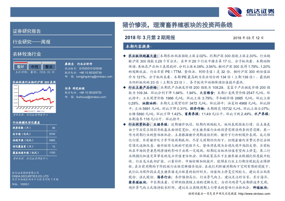 信达证券:农林牧渔2018年3月第2期周报:猪价惨淡,理清畜养殖板块的投资两条线.pdf