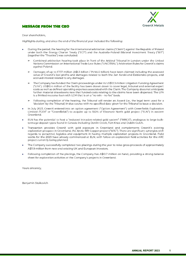 GreenX Metals Ltd(GRX)2023财年年度报告(英文版).pdf