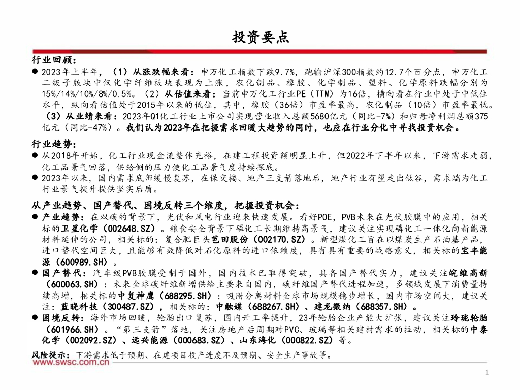 西南证券:化工行业2023年中期投资策略:把握底部复苏,分化中寻求机遇.pdf