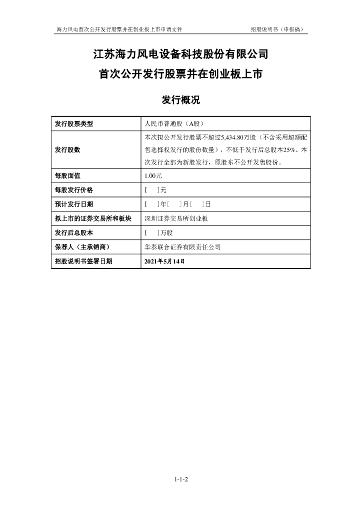 江苏海力风电设备科技股份有限公司深交所创业板IPO上市招股说明书.pdf