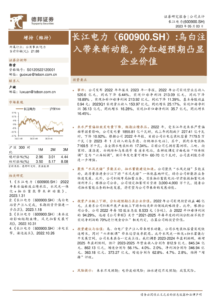 德邦证券:长江电力(600900)-乌白注入带来新动能,分红超预期凸显企业价值.pdf