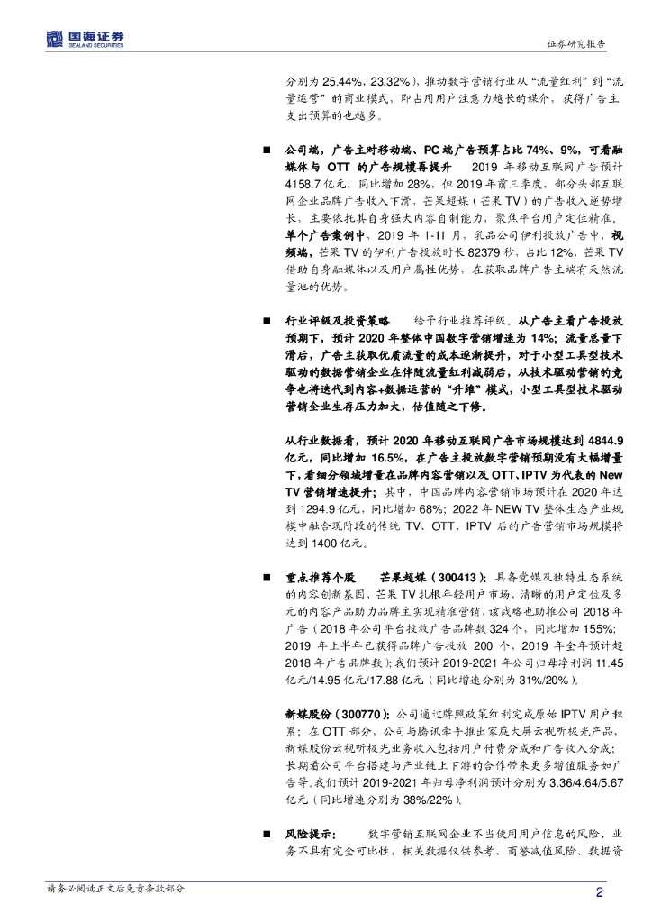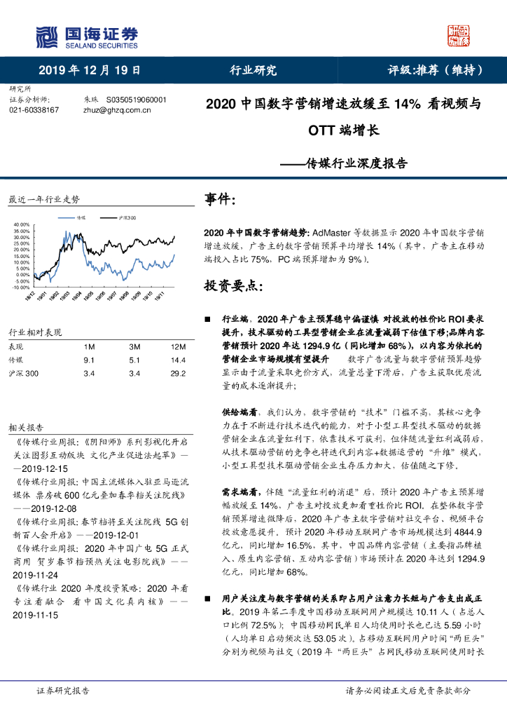 国海证券:传媒行业深度报告:2020中国数字营销增速放缓至14%看视频与OTT端增长.pdf