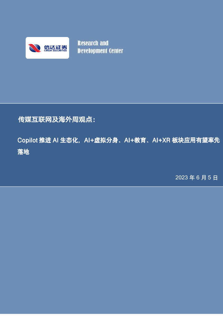 信达证券:传媒互联网及海外周观点:Copilot推进AI生态化,AI+虚拟分身、AI+教育、AI+XR板块应用有望率先落地.pdf