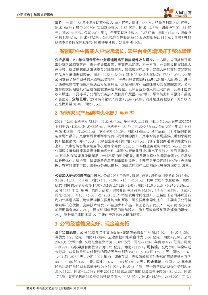 天风证券:萤石网络(688475)-云平台业务贡献收入利润,智能家居产品毛利显著提升.pdf