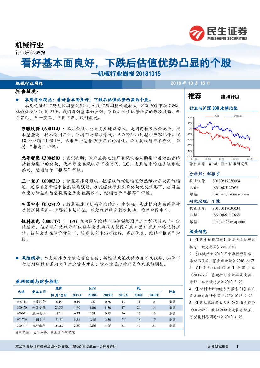 民生证券:机械行业周报:看好基本面良好,下跌后估值优势凸显的个股.pdf