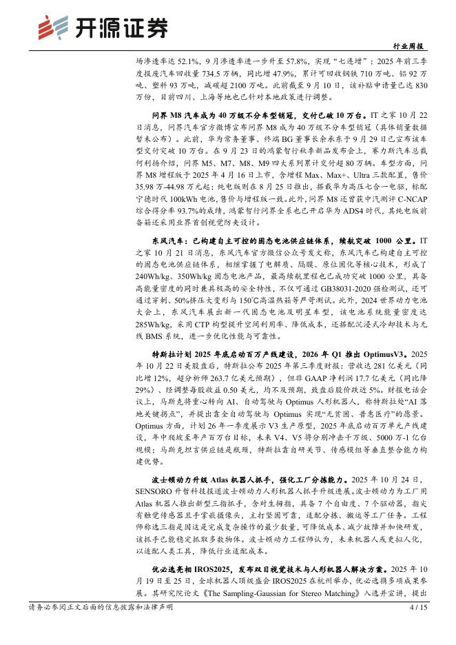 开源证券:汽车行业周报:特斯拉计划2026Q1推出OptimusV3,问界M8交付突破10万台.pdf