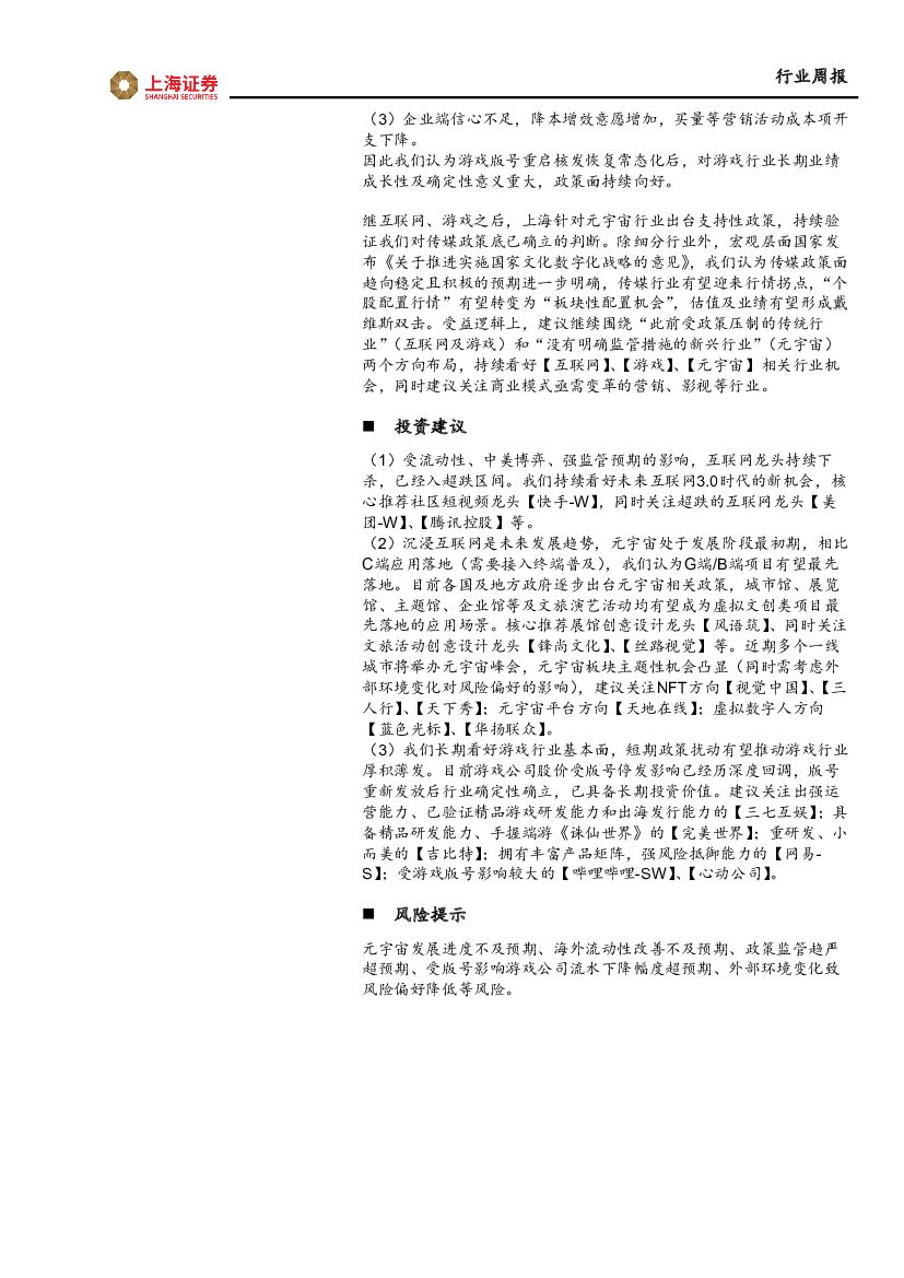 上海证券:互联网传媒行业周报:上海出台元宇宙支持性政策,持续验证传媒政策面持续向好.pdf