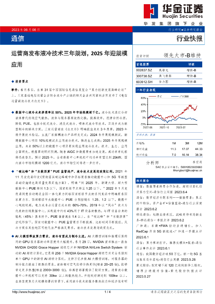 华金证券:通信:运营商发布液冷技术三年规划,2025年迎规模应用.pdf