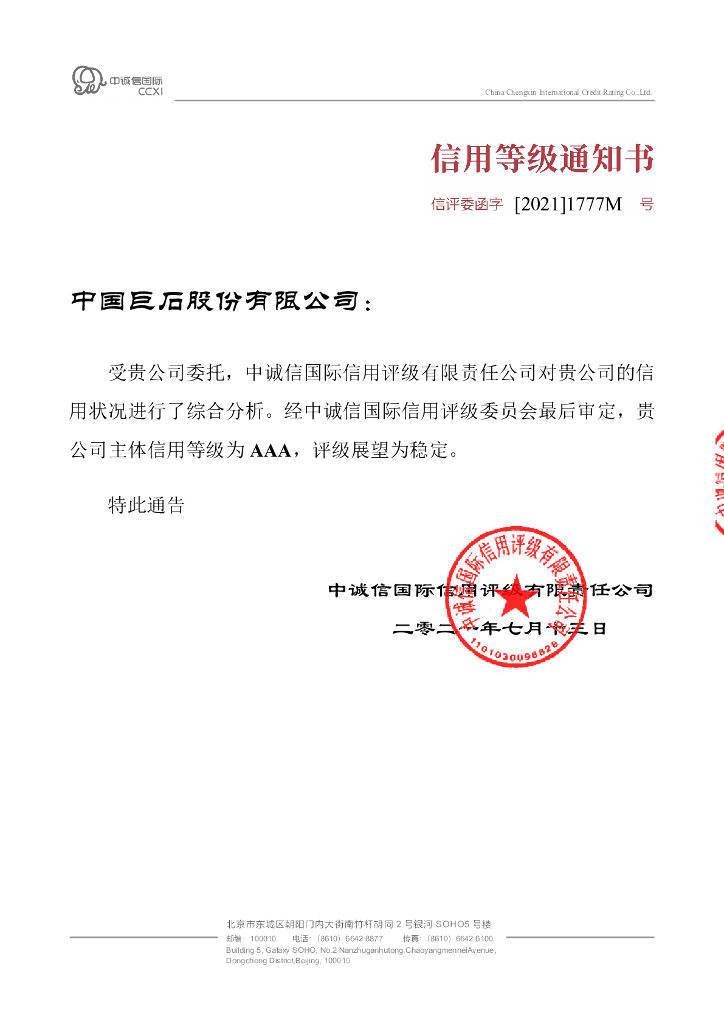 中诚信:2021年度中国巨石股份有限公司信用评级报告.pdf