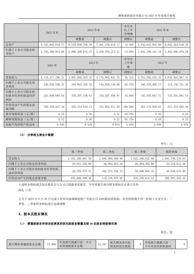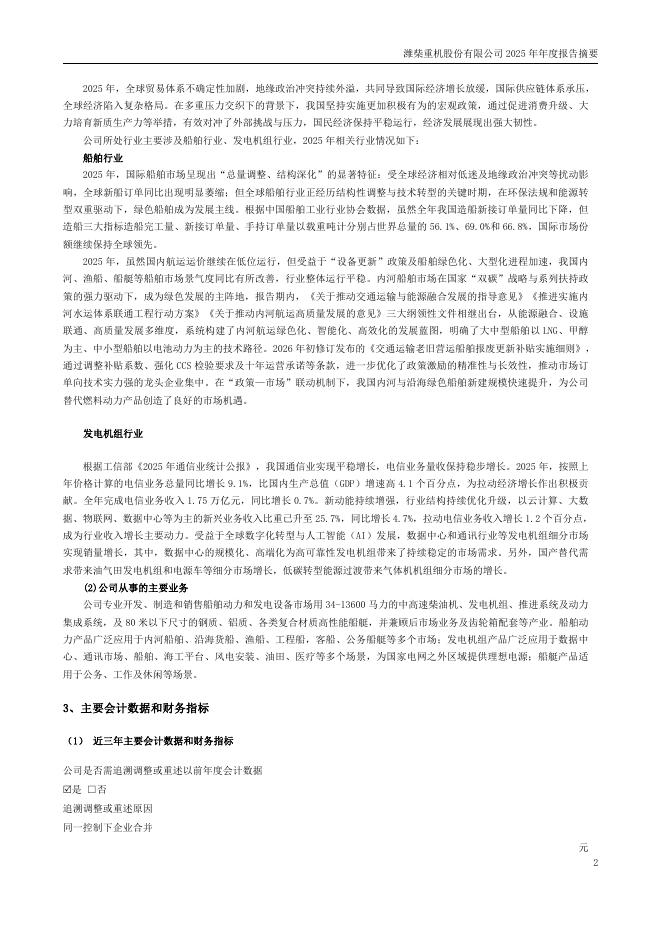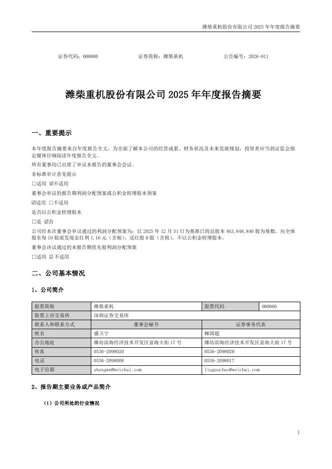 000880-潍柴重机:2025年年度报告摘要.pdf