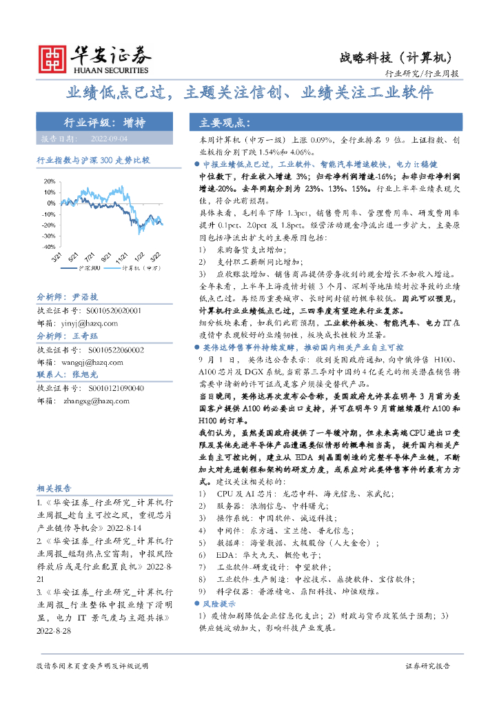 华安证券:战略科技(计算机)行业周报:业绩低点已过,主题关注信创、业绩关注工业软件.pdf