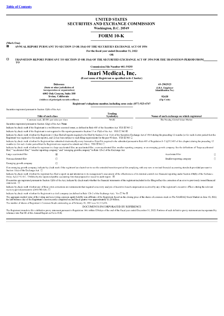 Inari Medical, Inc.(NARI)2022财年年度报告(英文版).pdf