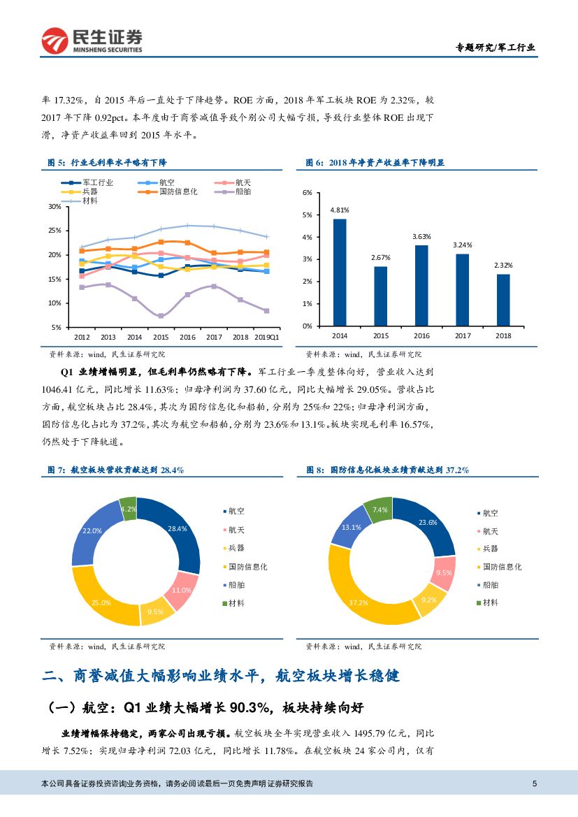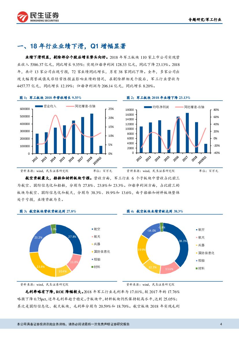 民生证券:军工行业2018年年报和2019年一季报综述:Q1业绩改善明显,全年增长可期.pdf