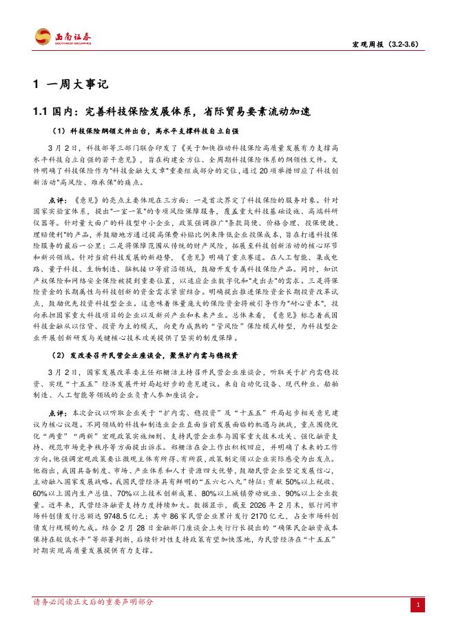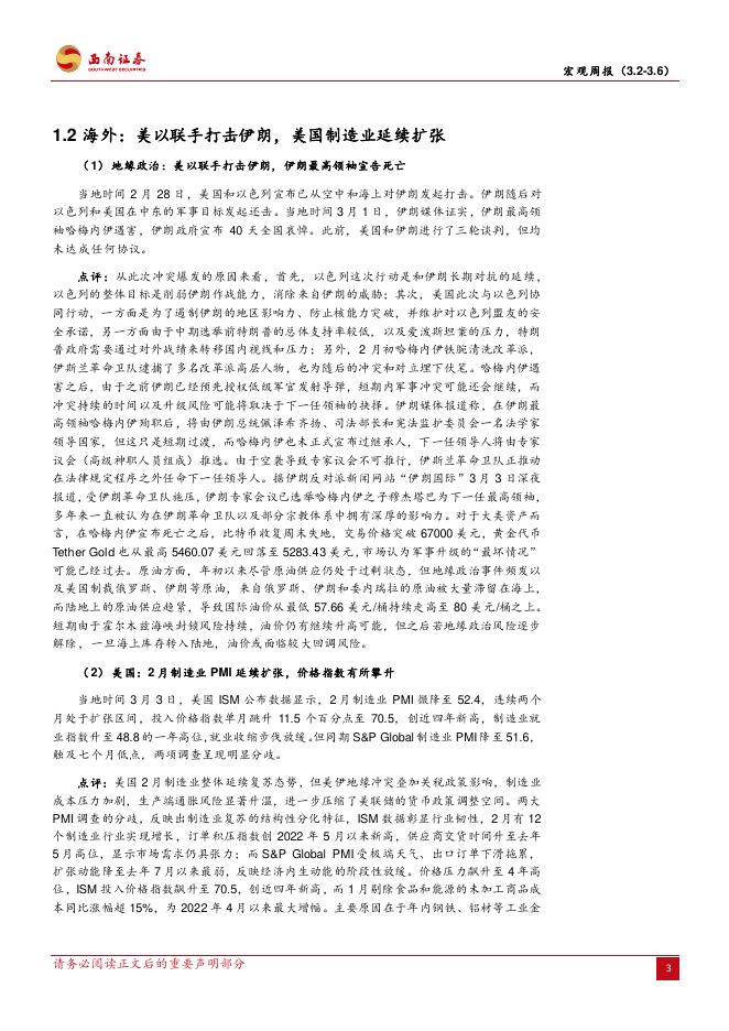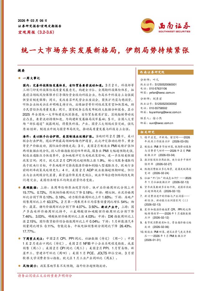 西南证券:宏观周报:统一大市场夯实发展新格局,伊朗局势持续紧张-260309.pdf