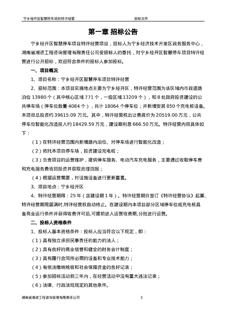宁乡经开区智慧停车项目特许经营招标文件.doc