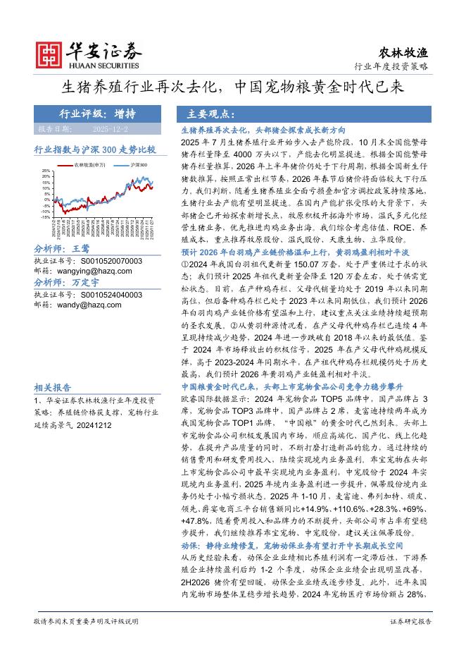 华安证券:农林牧渔行业年度投资策略:生猪养殖行业再次去化,中国宠物粮黄金时代已来.pdf