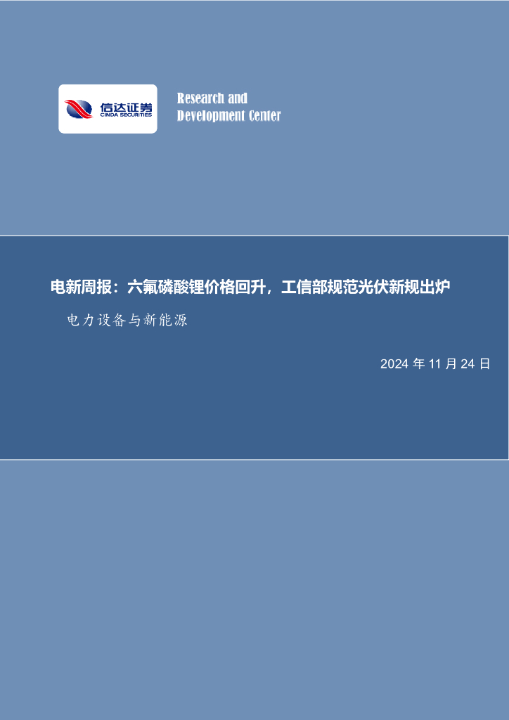信达证券:电新周报:六氟磷酸锂价格回升,工信部规范光伏新规出炉电力设备与新能源.pdf