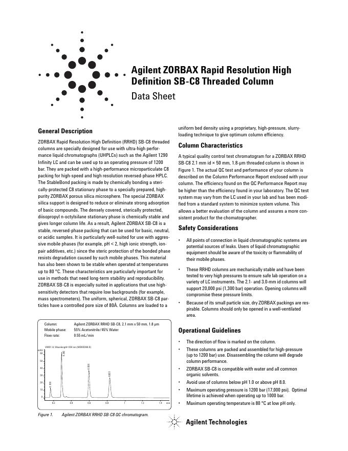 Agilent ZORBAX Rapid Resolution High Definition SB-C18 Threaded Column 数据手册(1)Agilent Microplate Labeler 数据手册.pdf