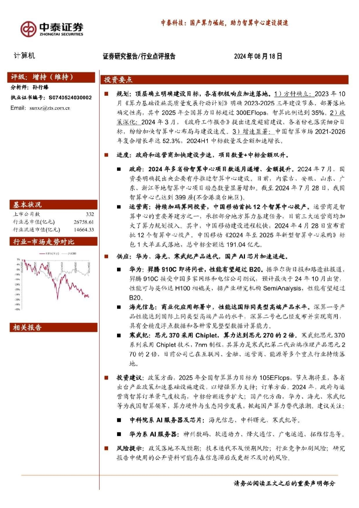 中泰证券:计算机行业:中泰科技:国产算力崛起,助力智算中心建设提速.pdf