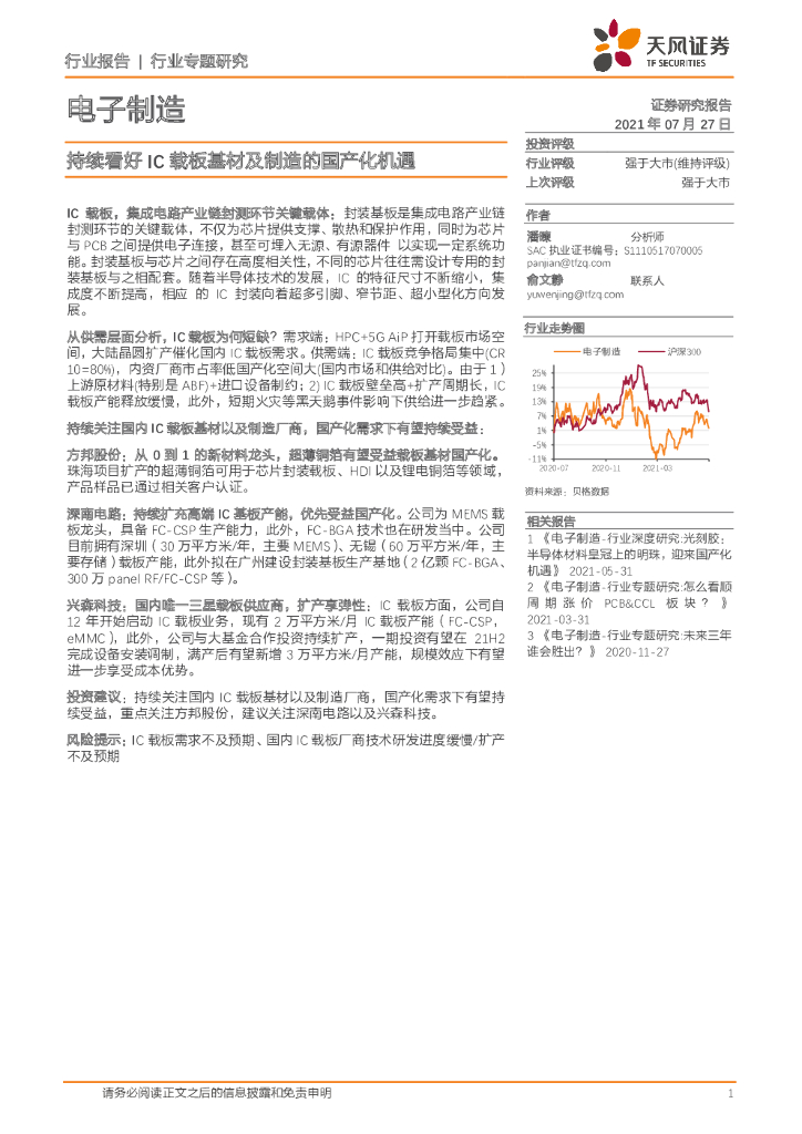 天风证券:电子制造行业专题研究:持续看好IC载板基材及制造的国产化机遇.pdf