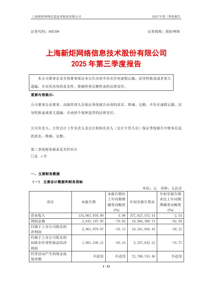 605398-新炬网络:上海新炬网络信息技术股份有限公司2025年第三季度报告.pdf