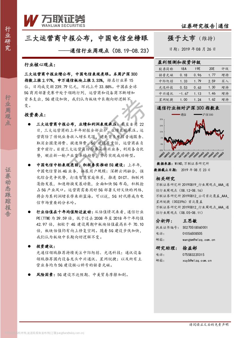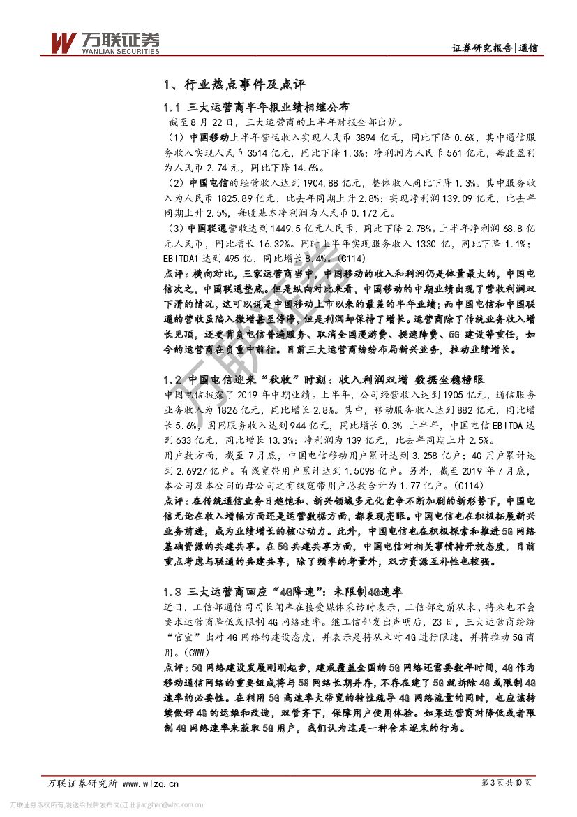 万联证券:通信行业周观点:三大运营商中报公布,中国电信坐榜眼.pdf