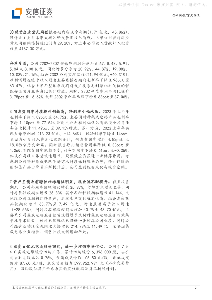 安信证券:紫光国微(002049)-2023H1归母净利润增长16.22%,智能安全芯片业务表现亮眼.pdf