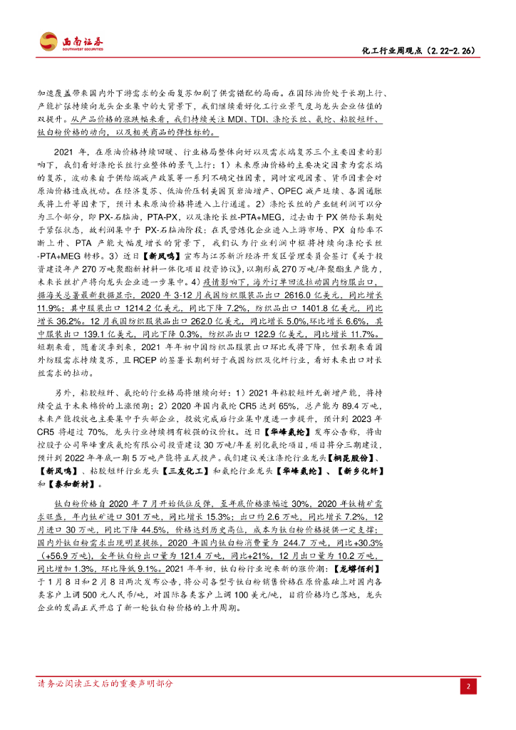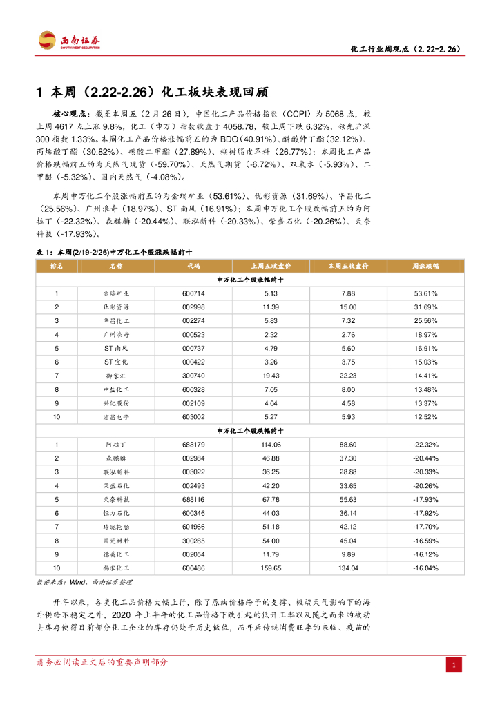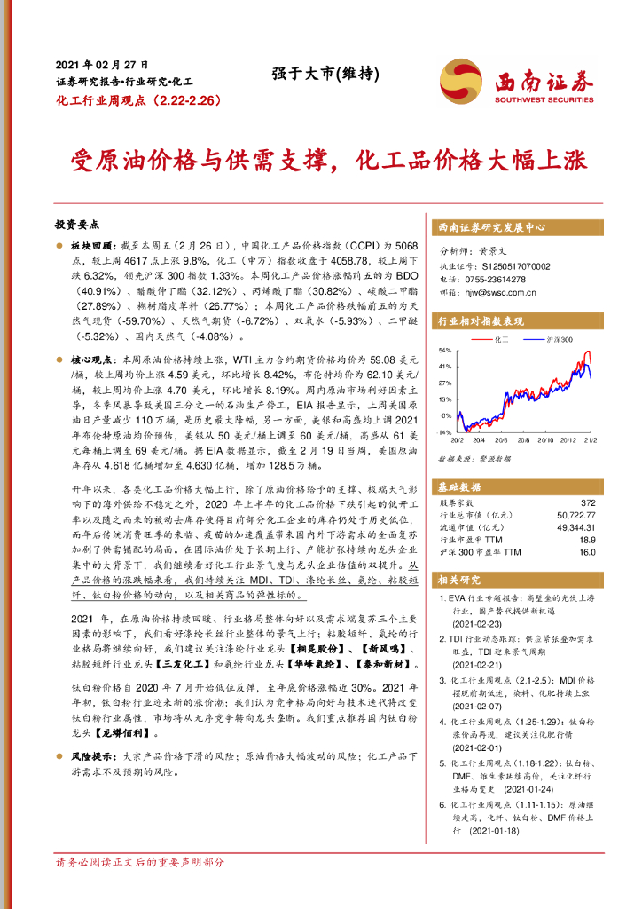 西南证券:化工行业周观点:受原油价格与供需支撑,化工品价格大幅上涨.pdf
