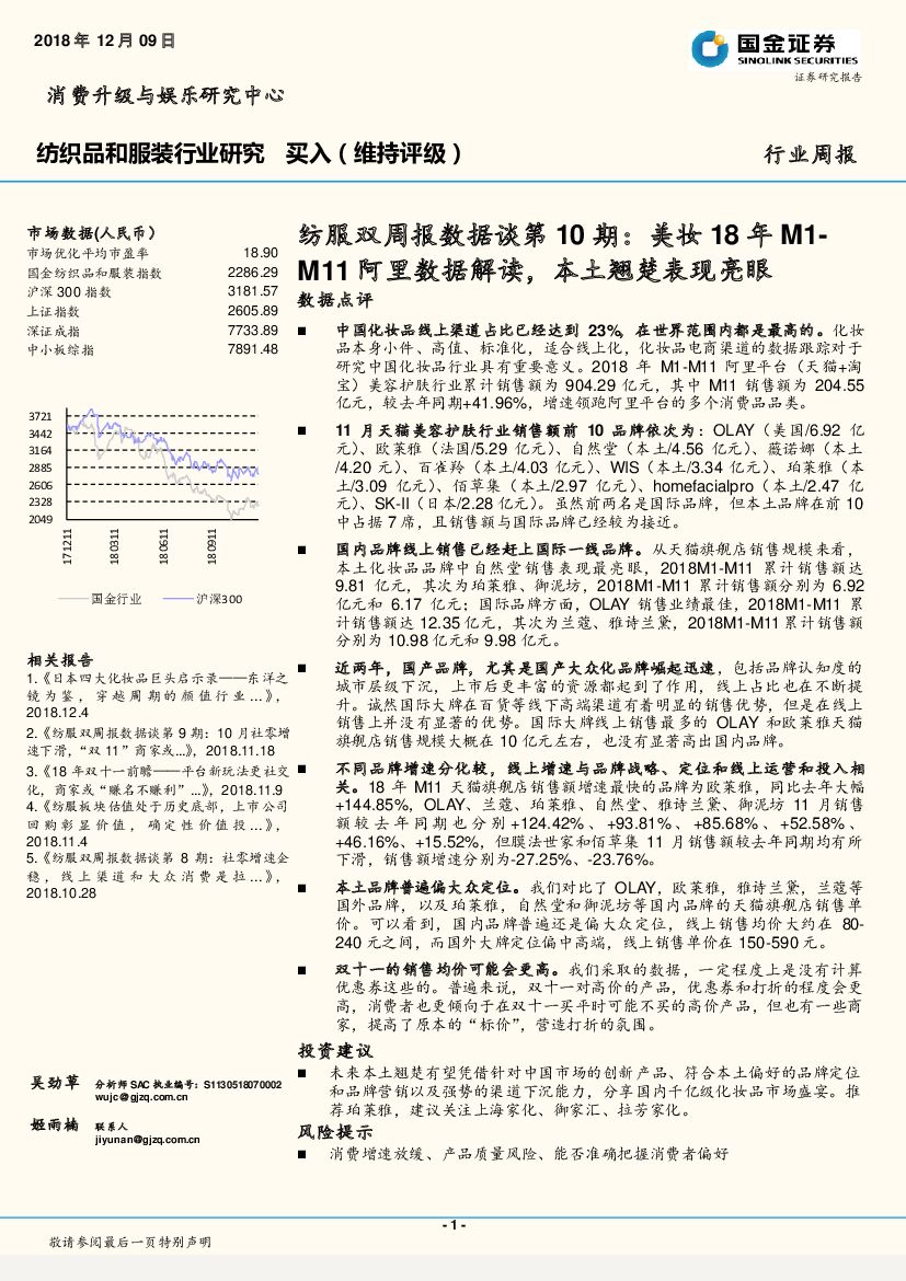 国金证券:纺服双周报数据谈第10期:美妆18年M1-M11阿里数据解读,本土翘楚表现亮眼.pdf