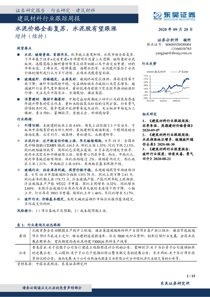 东吴证券:建筑材料行业跟踪周报:水泥价格全面复苏,水泥股有望跟涨.pdf