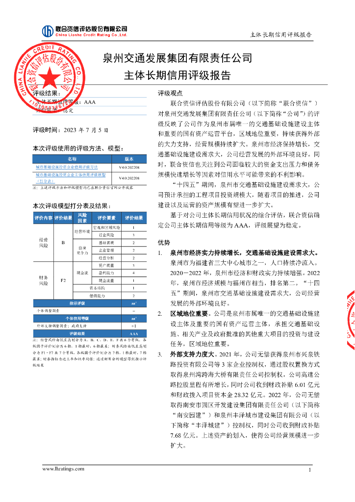 联合资信:泉州交通发展集团有限责任公司主体长期信用评级报告.pdf