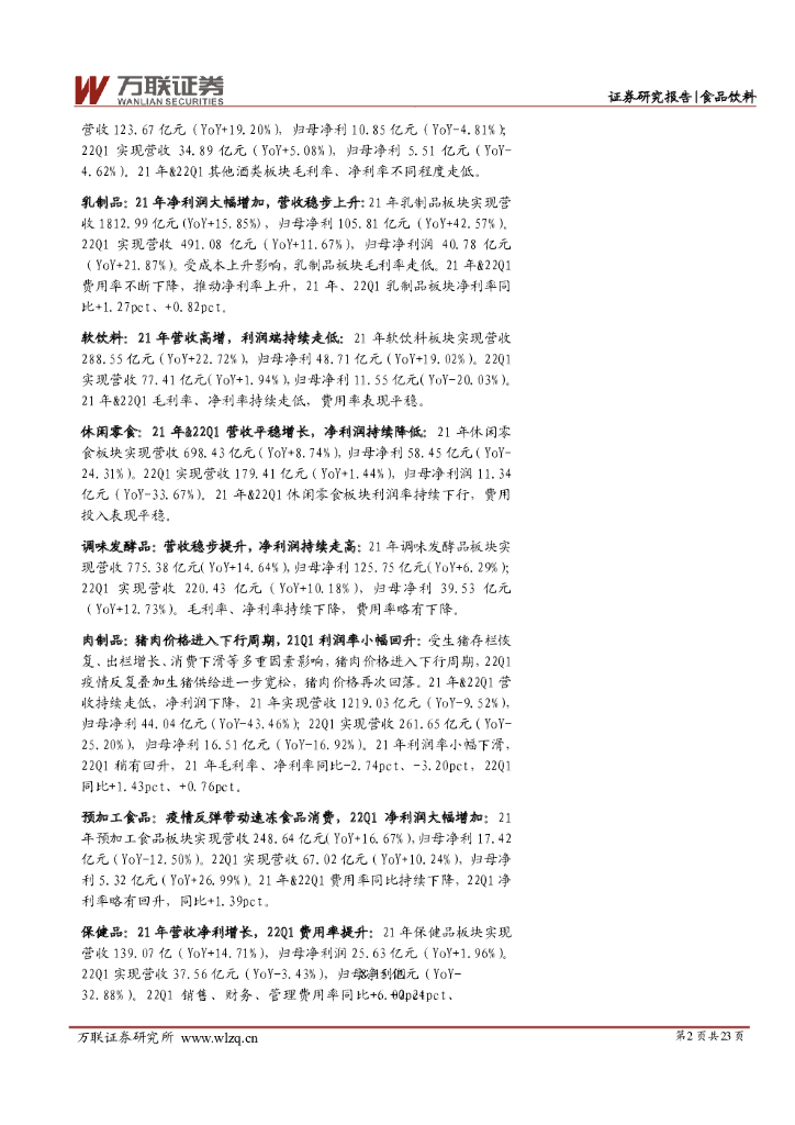 万联证券:食品饮料行业21年年报&22年一季报业绩综述:高端白酒韧性强劲,大众品业绩分化.pdf